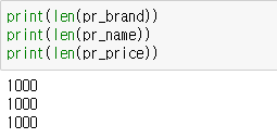 나중에 DataFrame으로 만들어줄 리스트를 세 개 형성하였습니다.