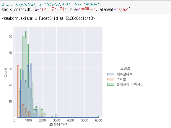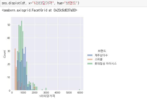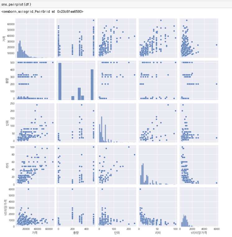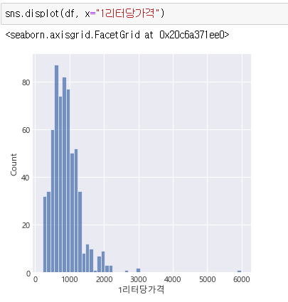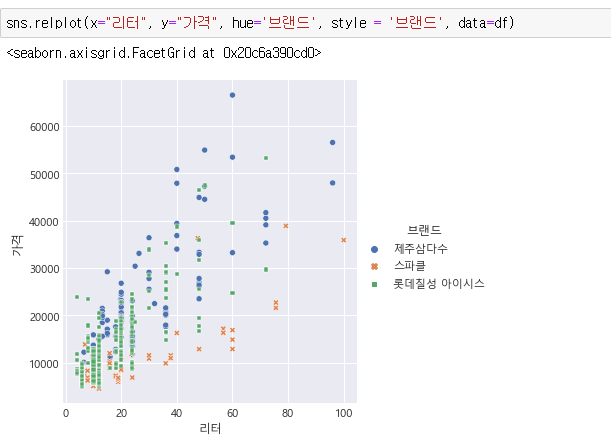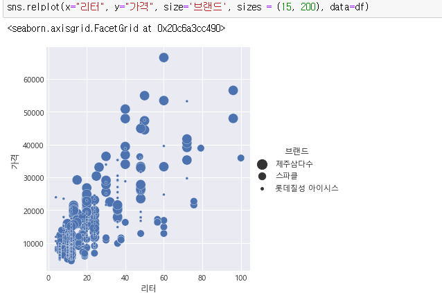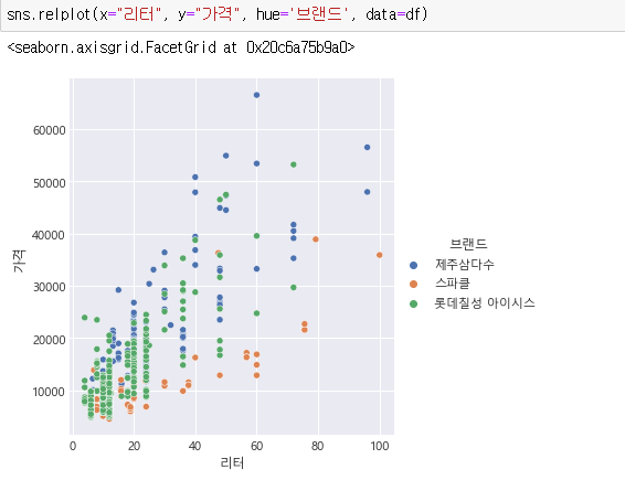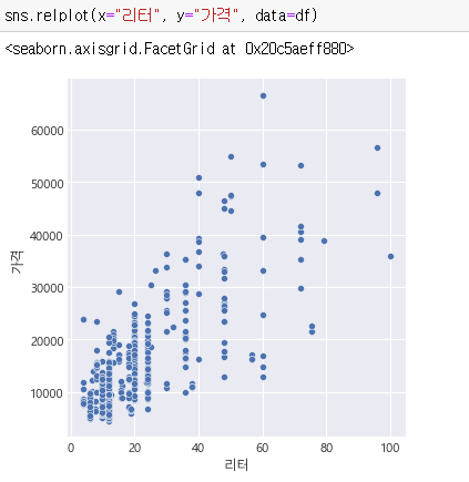 리터와 가격의 replot입니다.