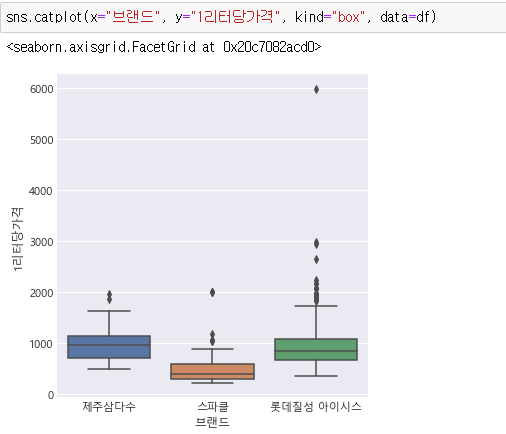 브랜드별로 1리터당가격 분포입니다.