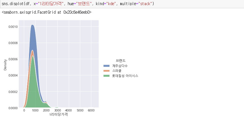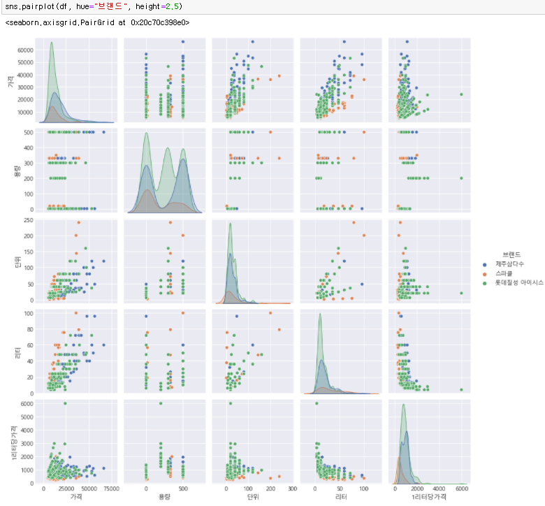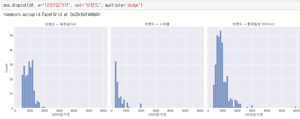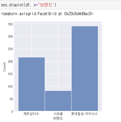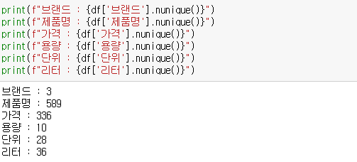유니크한 값들을 보면 브랜드는 3개 즉, 제주삼다수, 스파클, 롯데칠성 아이시스입니다.