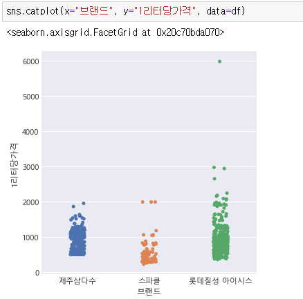 브랜드별로 1리터당 가격이 어떻게 분포되어 있는지 볼 수 있습니다.