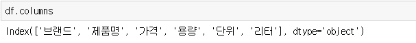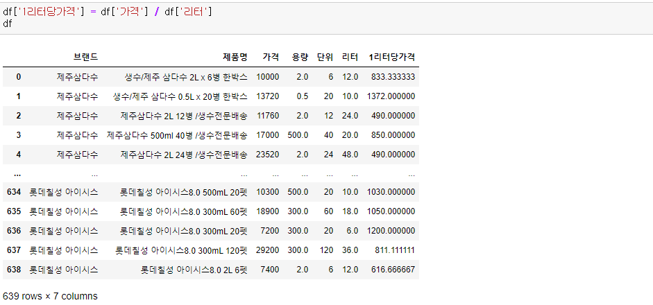 1리터당 가격 비교를 위해 1리터당가격 변수를 추가해주었습니다.