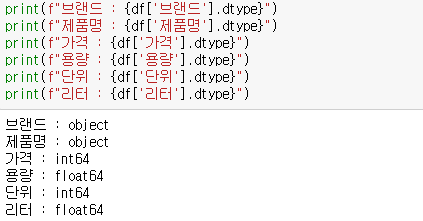 데이터 타입을 보면 브랜드와 제품명은 범주형