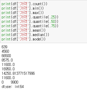 가격 변수의 기술통계량을 좀 더 자세히 살펴봤습니다.