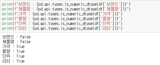 가격, 용량, 단위, 리터는 연속형입니다.