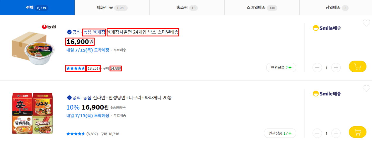 오늘은 G마켓 사이트에서 농심 라면 데이터를 수집하기 위해 크롤링을 해보겠습니다.