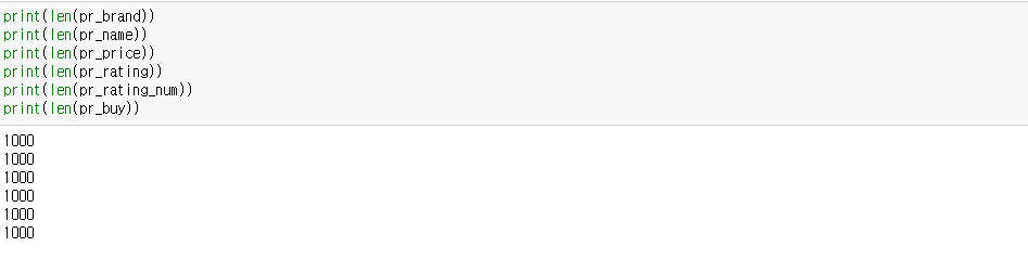 각 변수 값을 추출하기 위해 빈리스트를 만들고 해당 태그를 넣었는데