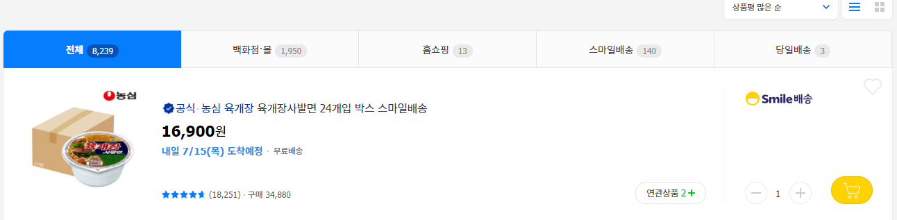 검색 조건은 무료배송과 농심입니다.