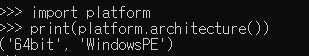 Anaconda Prompt를 실행하고 Python에서 platform.architecture를 쳐보면