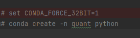 CONDA_FORCE_32BIT = 1을 하지않고 먼저 quant 가상환경을 만들어 준후