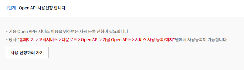 먼저 로그인을 해서 Open API 사용신청을 했습니다.