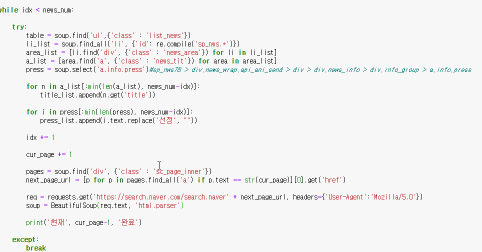 에러가 나면 반복문이 멈추도록 했습니다.