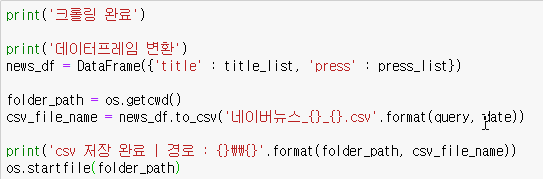 csv로 저장할 때는 현재 경로에 날짜와 검색 키워드를 제목으로 넣어주었습니다.