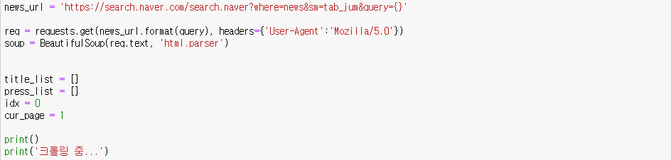 오늘은 네이버 뉴스에서 기사 제목과 언로사를 수집하기 위해 크롤링을 해보겠습니다.