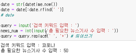 검색 키워드와 몇 페이지까지 수집할 지 input을 통해 자유롭게 입력하도록 했습니다.