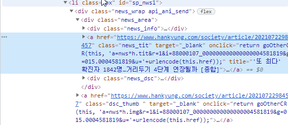 기사제목은 text로 따로 나와 있는 것이 아니라 태그 안에 들어 속해있습니다.