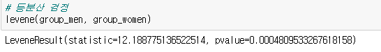 등분산이 가정되지 않음으로 구해야 하므로 equal_var = False입니다.