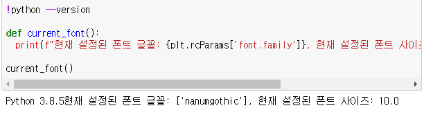 현재 파이썬 버전과 설정된 폰트 글꼴, 폰트 사이즈를 확이헀습니다.