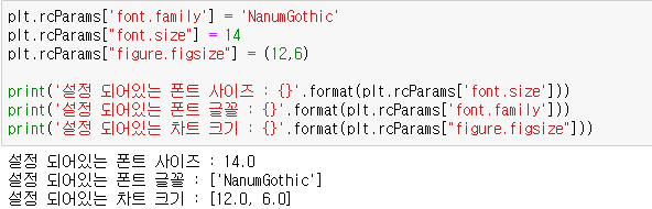 이제 주피터 노트북에 폰트와 그래프 크기를 지정해주었습니다.