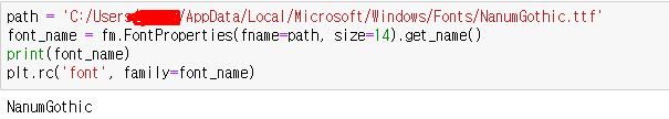 위의 NanumGothic.ttf 경로를 path 변수에 할당하고 폰트를 바꿔주었습니다.