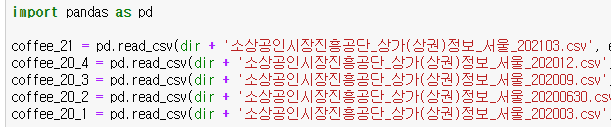 오늘은 소상공인시장진흥공단 상가(상권)정보 서울 데이터를 가지고 커피 브랜드 몇 곳의 매장 수 변화를 분석해보겠습니다.
