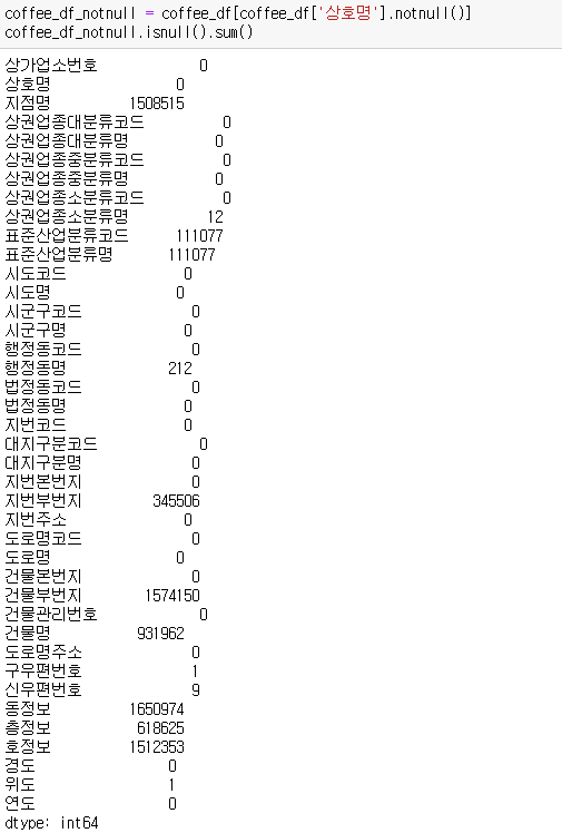 중요한 것은 상호명이므로 상호명이 결측이 아닌 것만 다시 할당했습니다.