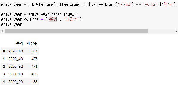 연도로 하면 헷갈리니 분기로 변수명을 변경했습니다.