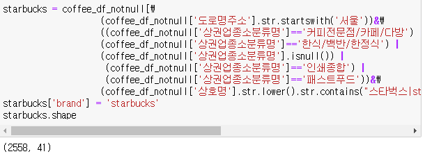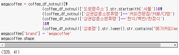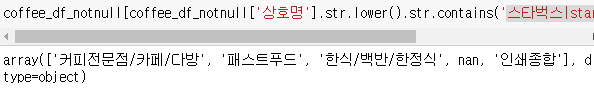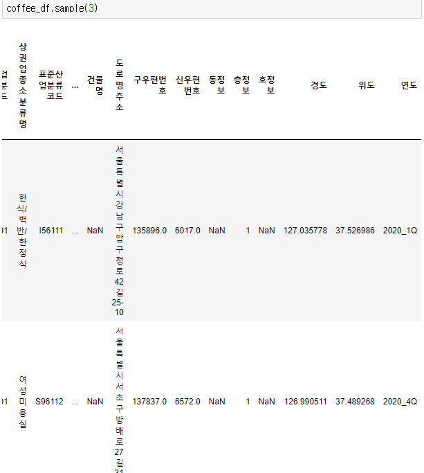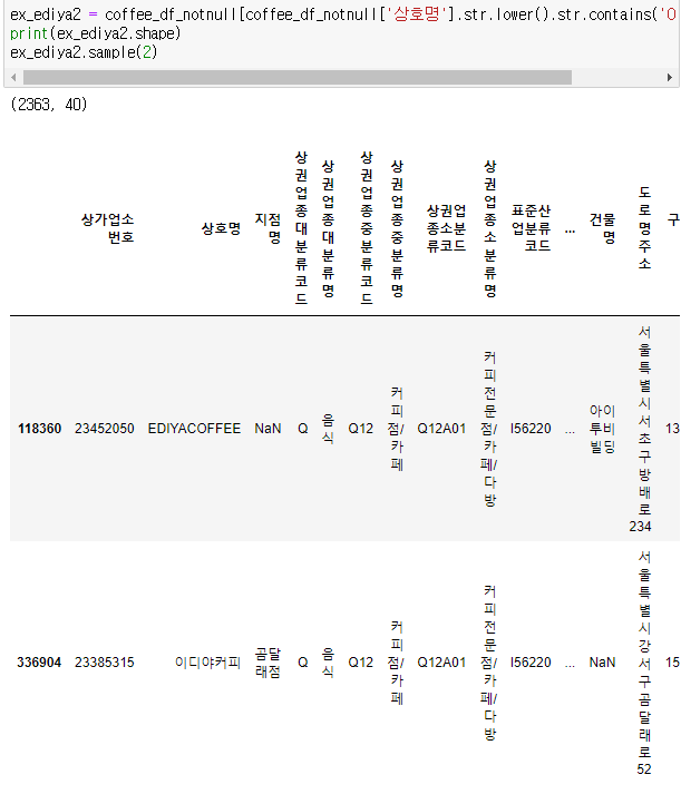이 두 커피점만 상권업종중분류명을 한식과 패스트푸드로 해야 할 이유가 있었다고 생각합니다.
