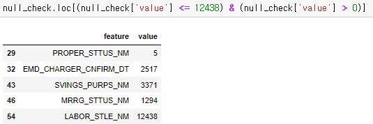 결측치 수가 애매한 변수들만 살펴보겠습니다.