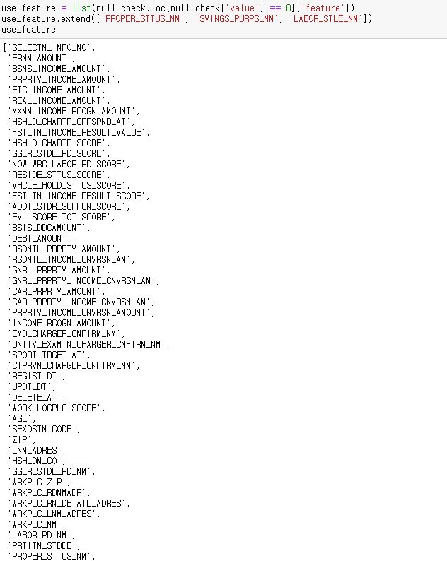 총 개수가 9만 5천개 쯤 되는데 4만개 이상의 결측값이 존재한다면 그 변수는 없애주겠습니다.