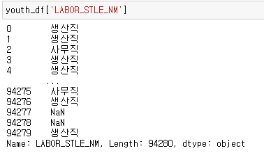 마지막 LABOR_STLE_NM은 근로형태명입니다.