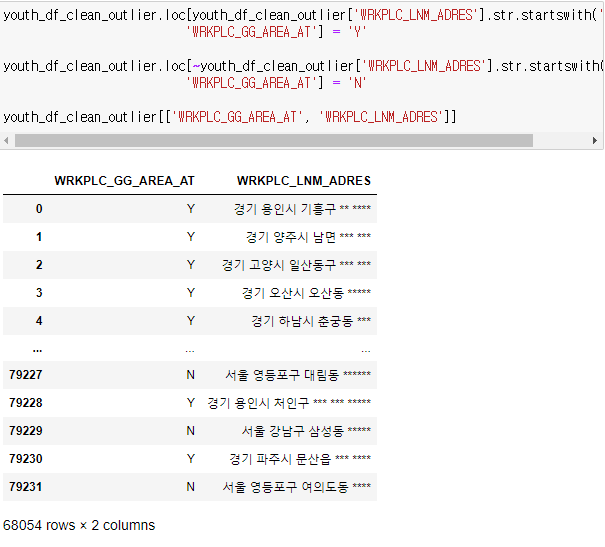 저번에 언급한대로 경기에 직장을 두고 있으면 Y, 아니면 N 값을 가진 변수를 생성했습니다.