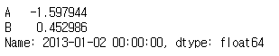 # 2013년 1월 2일부터 2013년 1월 4일까지 데이터 중 A와 B열의 데이터만 선택