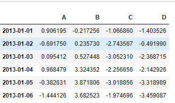 df = pd.DataFrame(np.random.randn(6,4), index=dates,