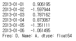 # 2013년 1월 1일, A 열의 데이터만 확인