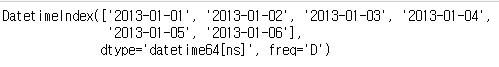# 기본 날짜를 지정하고 periods 옵션으로 6일간이라고 지정
