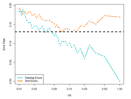 Training error rates는 k가 줄어들거나 유연성이 증가함에 따라 감소합니다.