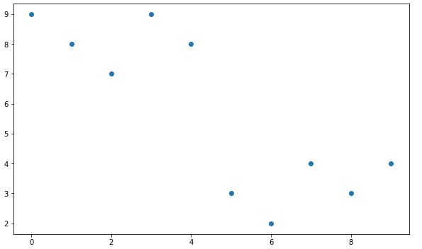 y = np.array([9,8,7,9,8,3,2,4,3,4])