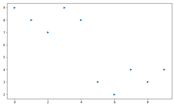 plt.scatter(t,y, marker='>') # marker 지정