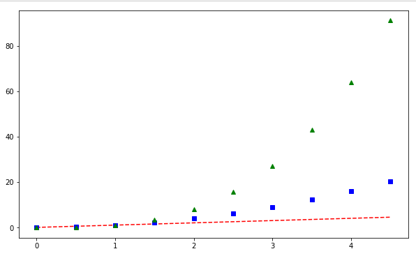 t = np.arange(0, 5, 0.5) # 변수 생성