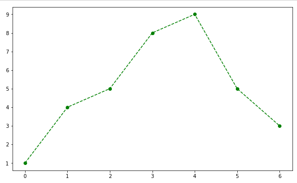 plt.plot(t, y, color='green', linestyle='dashed', marker='o') # 마킹 지정