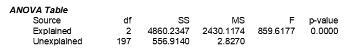 이 물음은 ANOVA table, F 검정을 통해 답할 수 있습니다.