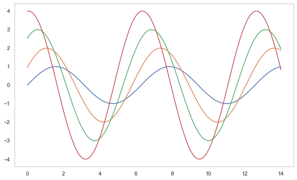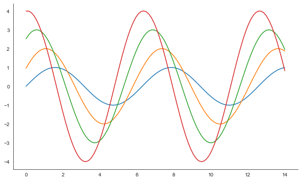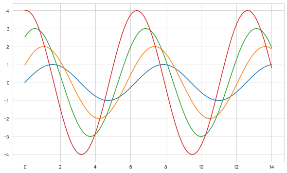 plt.plot(x,y1, x,y2, x,y3, x,y4)