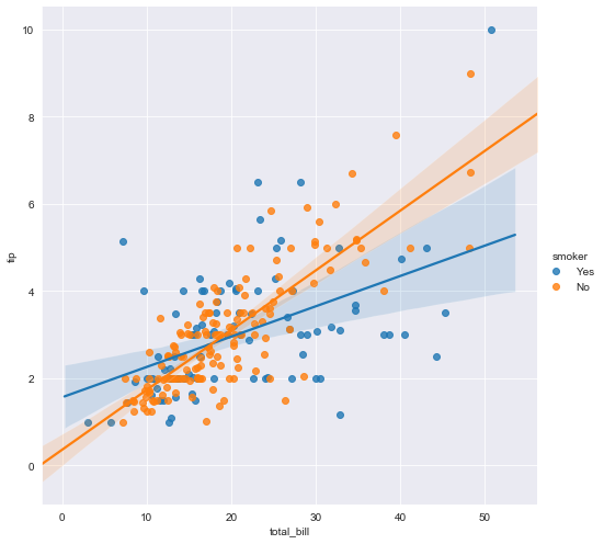 ▶ Seaborn lmplot 데이터셋 변경 적용하기