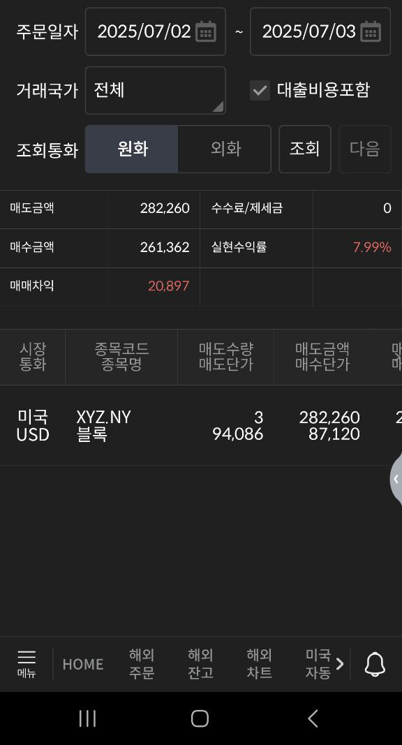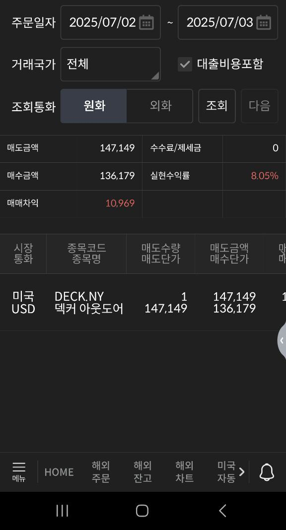 2025년 실현손익: 1054310 → 1075207(8.00%)