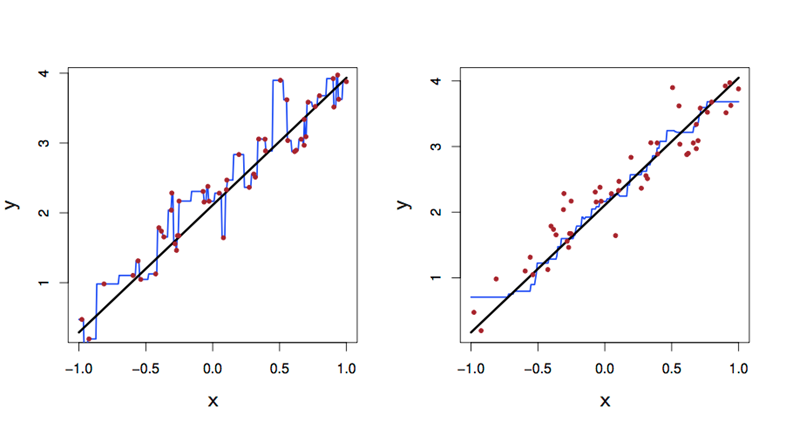만약 k가 작다면 KNN은 선형 회귀보다 더 유연합니다.