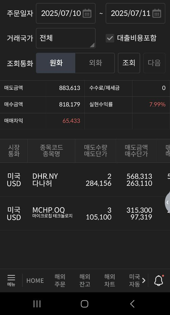 2025년 실현손익: 1165630 → 1231063(8.00%)
