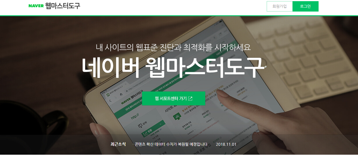 네이버 웹마스터 도구 홈페이지에 접속한 후 로그인합니다.