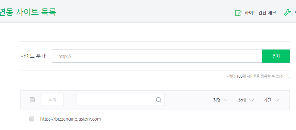 본인의 티스토리 주소를 입력하고 추가 버튼을 눌러주세요