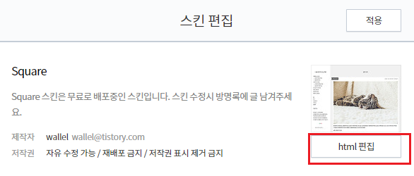 오른쪽 상단에 있는 html 편집을 클릭합니다.